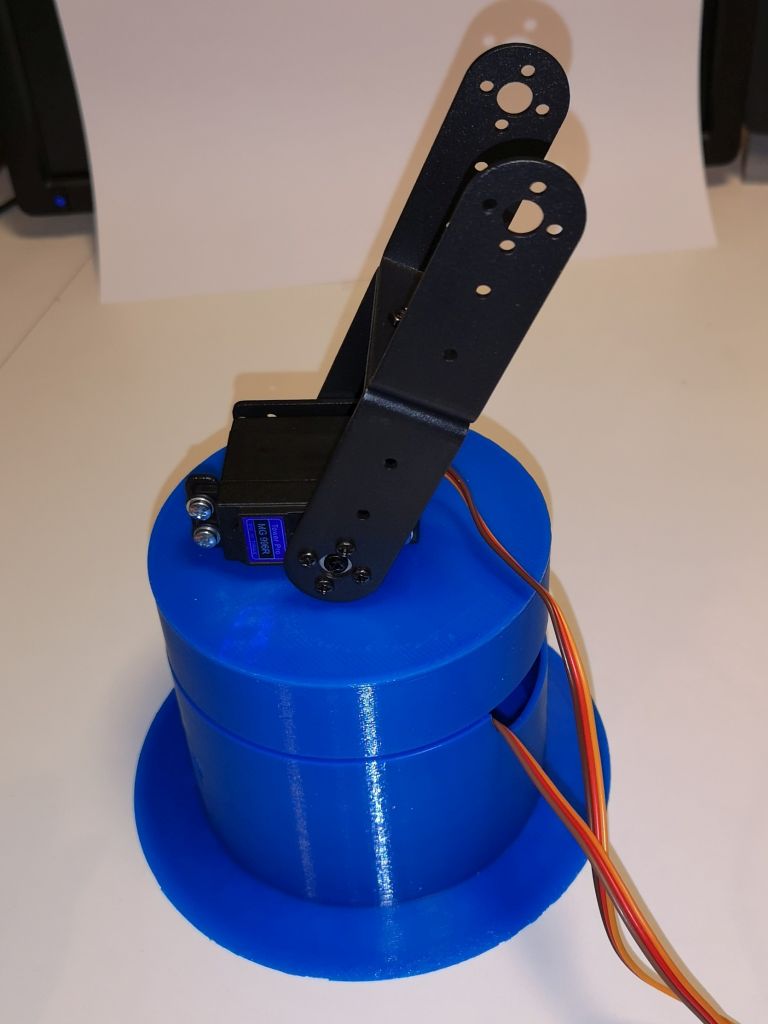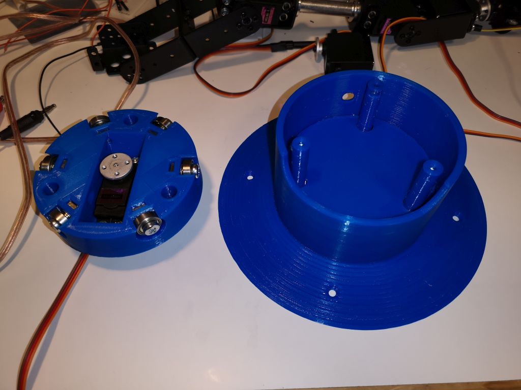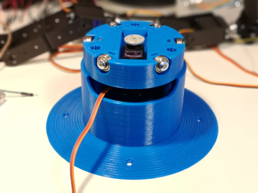 Günstiges Angebot gefunden mit 6 Servo Motoren bei Ebay. Einzig der mitgelieferte Fuss war viel zu klein und zu leicht. Also selber was konstruieren…